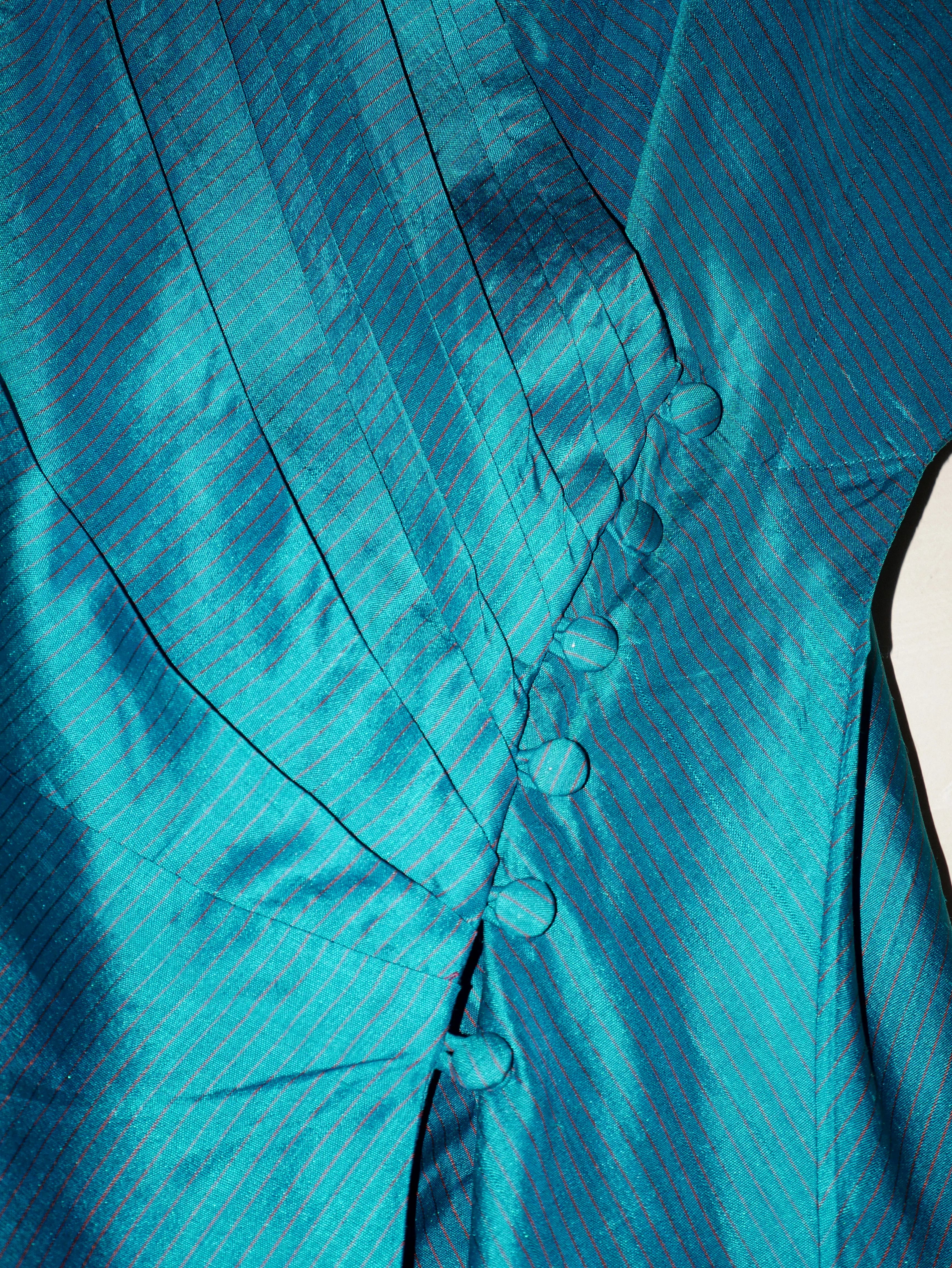 90s Gattinoni Blue Quilt Jacket With Piping Detail | One size